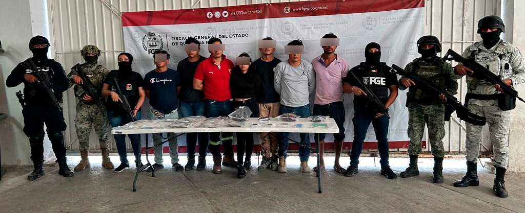 CANCÚN. – Por su probable participación en hechos que pudieran ser constitutivos de delitos contra la salud en su modalidad de narcomenudeo, la Fiscalía General del Estado, en colaboración con personal de la Secretaría de Seguridad Ciudadana, Guardia Nacional, Secretaría de la Defensa Nacional y Secretaría de Marina, detuvo en flagrancia a siete personas.