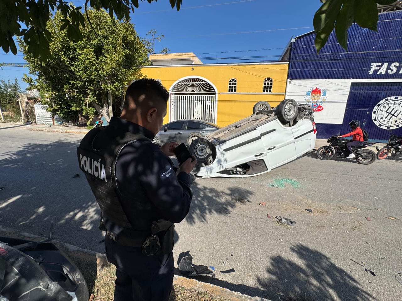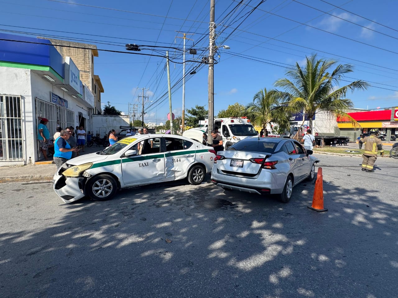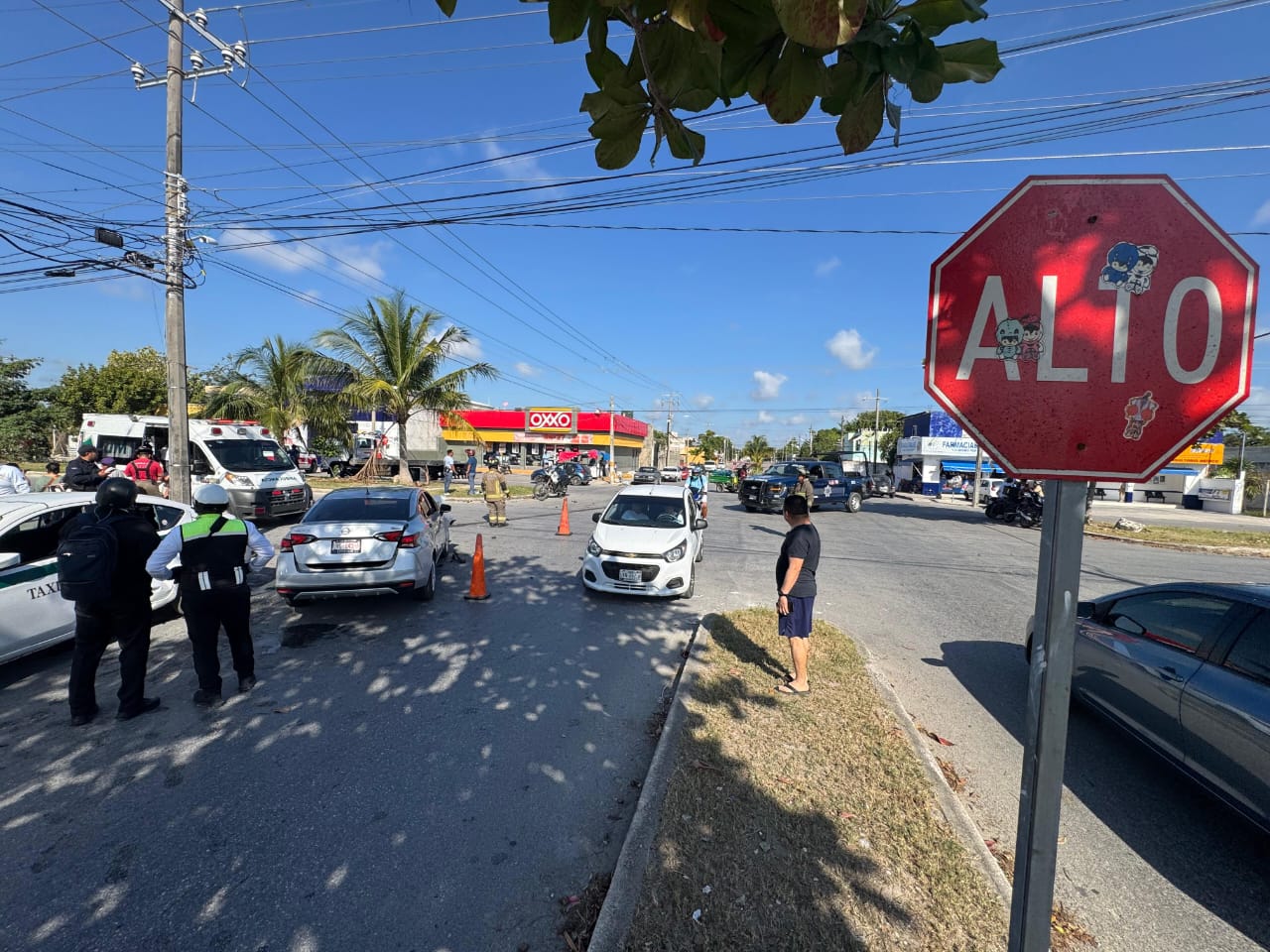 En el accidente también estuvo involucrado un taxi del sindicato Andrés Quintana Roo, número económico 3144, el cual realizaba una maniobra de vuelta cuando fue alcanzado por el Nissan Versa.