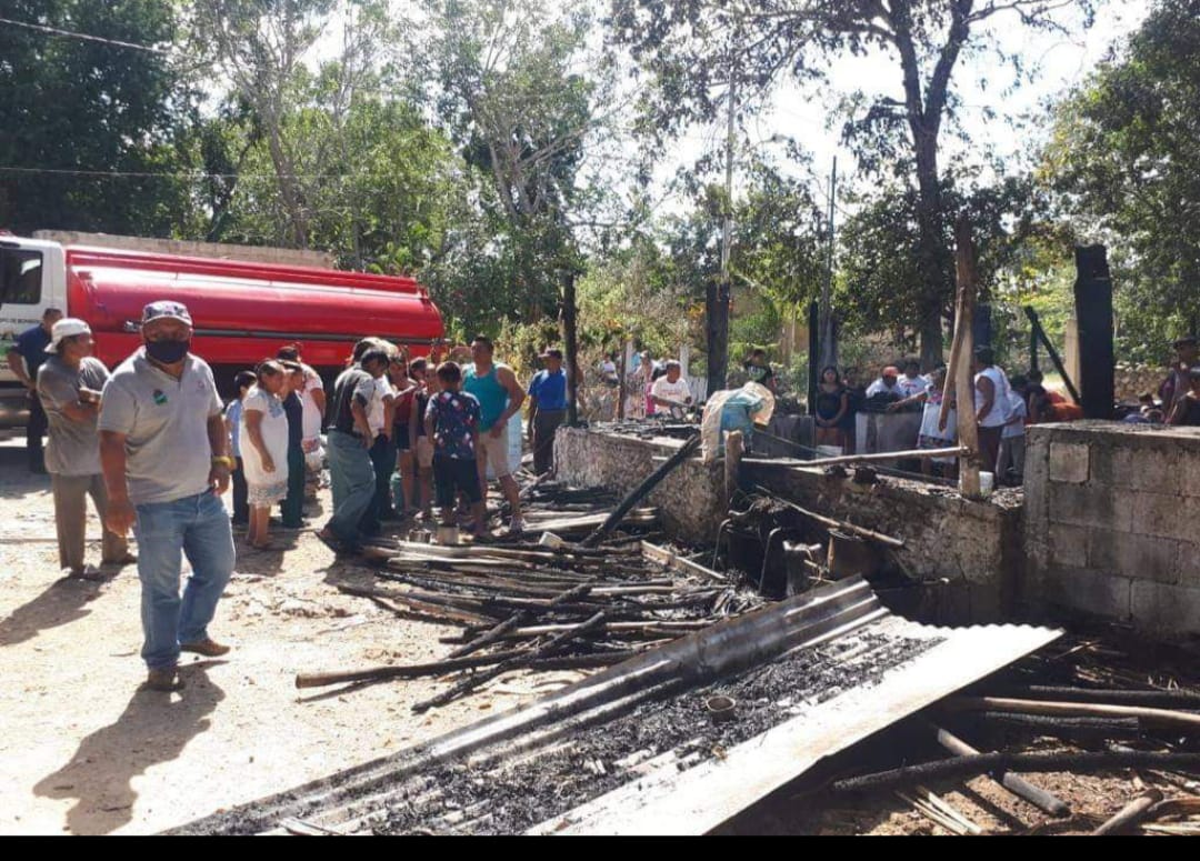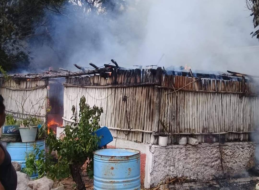 TULUM.- Una familia se quedó sin la vivienda de madera y palma que habitaban al quedar consumida por las llamas a consecuencia del uso de pirotecnia, por parte de un niño.