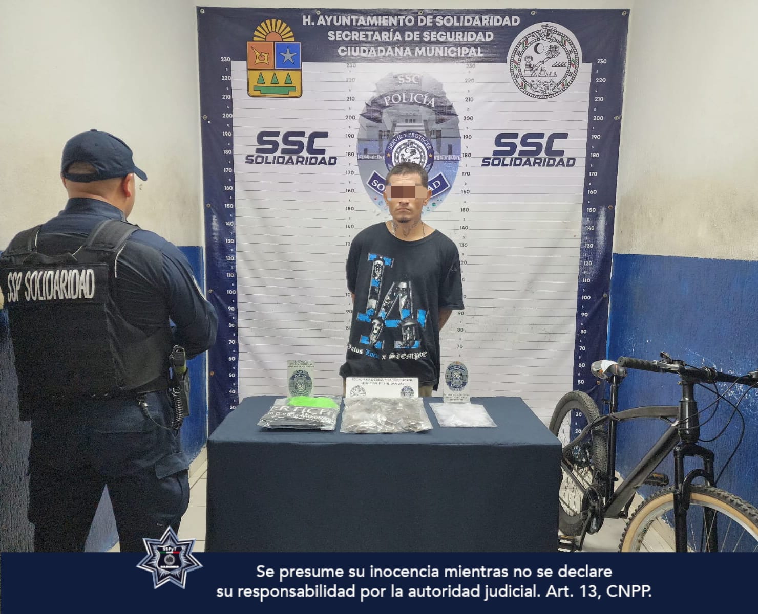 Playa del Carmen, Solidaridad a 14 de septiembre de 2024.- La Policía Municipal de Solidaridad, realizó la detención de una persona posiblemente vinculada a la venta de narcóticos, al traer 150 dosis de posibles drogas.