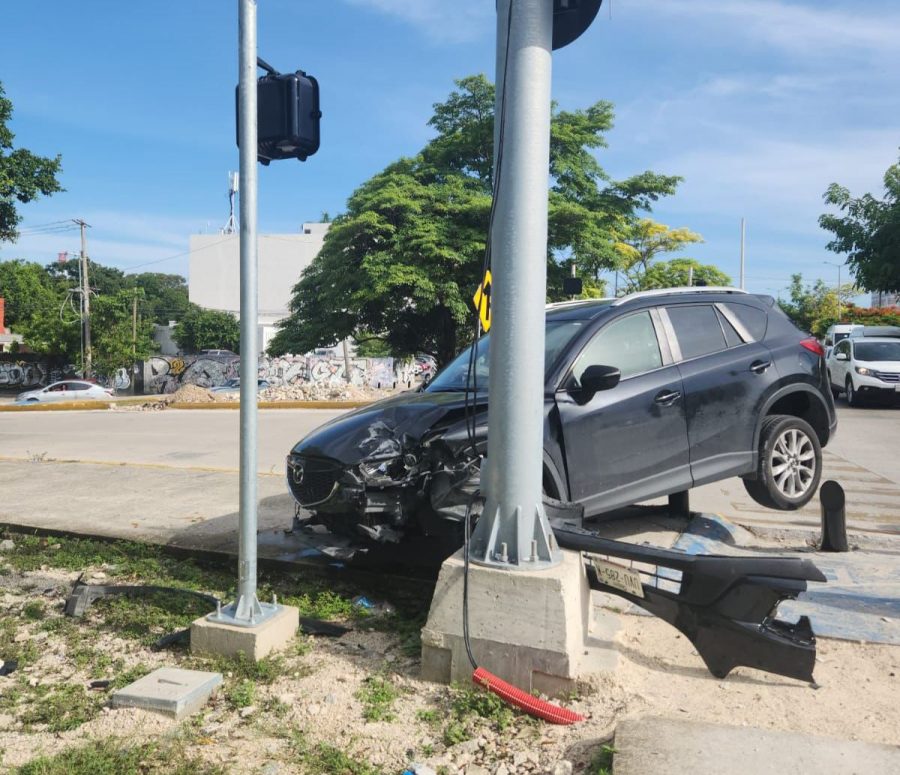 Los hechos ocurrieron cerca de las 9:20 de la mañana, cuando al conductor de un coche Mazda, tipo CX5, negro, perdió el control al llegar al cruce de la avenida Sayil, provocando que chocara de su lado izquierdo.