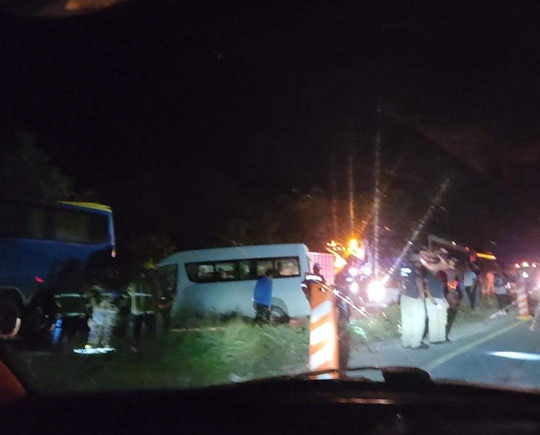 Según se informó, el percance ocurrió luego que el operador del autobús se estacionara sobre el carril de circulación sin luces encendidas ni señalamientos, lo que hizo que la van se estrellara con su parte trasera.