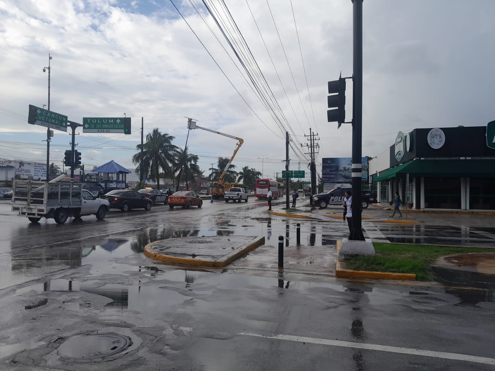 Automovilistas que venían por la carretera federal fueron desviados por la avenida Xel-Ha hacia el Arco Vial en lo que se solucionaba esta obstrucción.