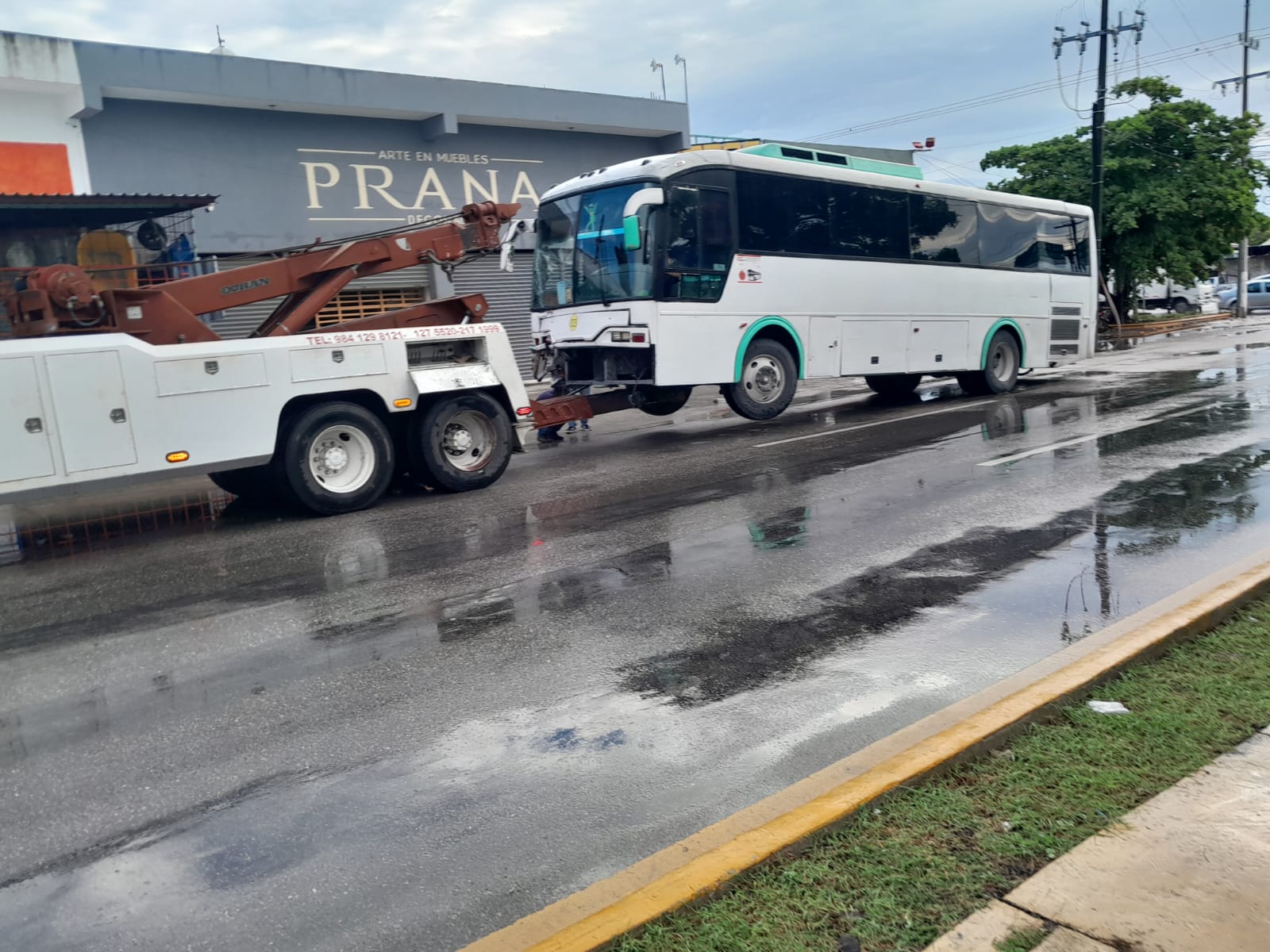 PLAYA DEL CARMEN.- Un autobús que quiso ganarle a un semáforo, en el bulevar 28 de Julio acabó chocando y derribando un poste en el bulevar Playa del Carmen, por lo que quedó atravesado en la vialidad, a eso de las 8 de la mañana. Esto obligó a autoridades a cerrar esta importante arteria, al igual que la avenida 28 de Julio.