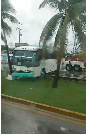 Fue una mala maniobra, pues a esta hora la vialidad estaba muy cargada de vehículos y al cruzar la 28 de Julio vio que estaba el tránsito detenido. Para evitar estrellarse por alcance con estos carros, el chofer dio un volantazo, subiéndose en el camellón central y derribando un poste de la Comisión Federal de Electricidad.