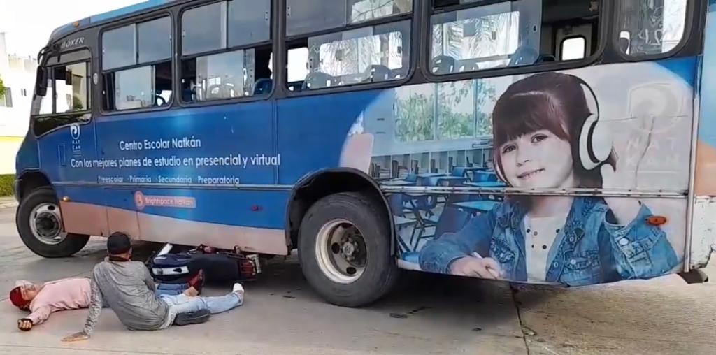 Los hechos ocurrieron luego de que el conductor de un camión de la empresa turicun los arrollara, dejándolos lesionados, uno de ellos con al parecer una fractura en el pie.