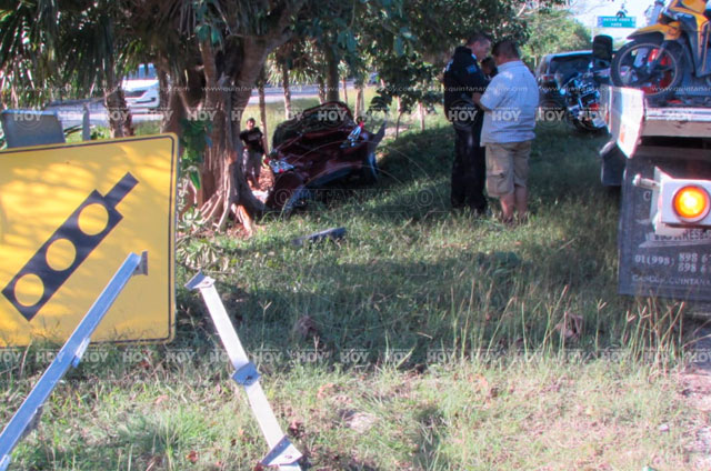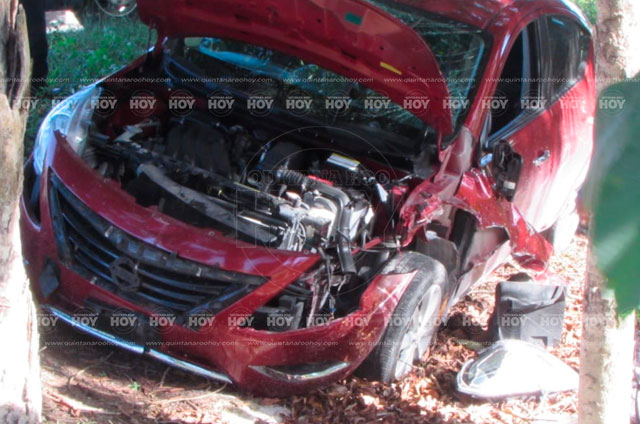 El vehículo particular tras el impacto salió proyectado hacia el camellón central, al mismo tiempo derribando un señalamiento de tránsito, el carro particular quedo completamente destrozado por la parte trasera así como de la parte frontal.