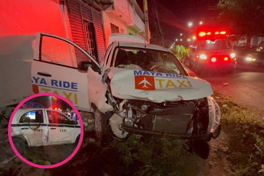 Un taxi intentó ganarle el paso a un vehículo del aeropuerto y terminó impactado en Cancún. Hay varios lesionados y daños severos.