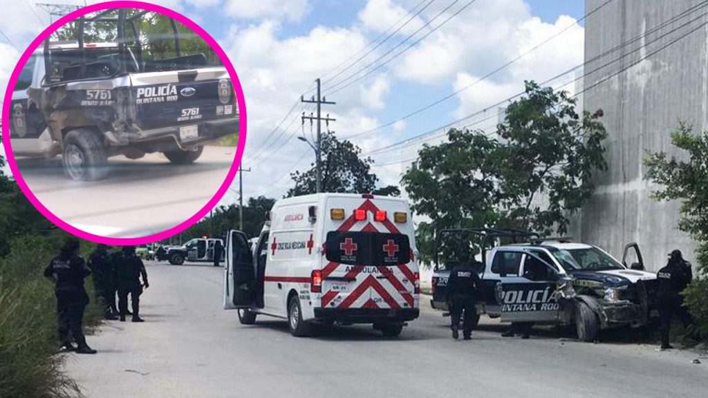 Policías de las patrullas 5707 y 5761 alertaron a sus compañeros sobre un choque con lesionados en la Región 207, sobre avenida 20 de noviembre, por lo que agentes de la Policía Quintana Roo se trasladaron a la zona, para descubrir que el percance era entre dos vehículos de Seguridad Pública.