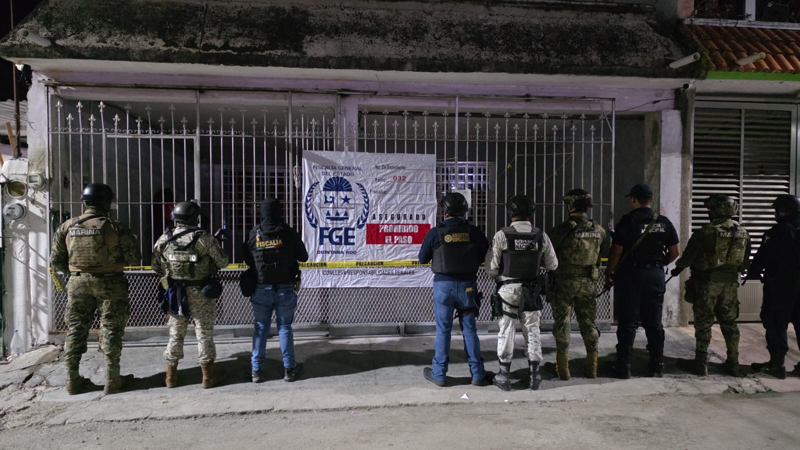 Chetumal.- Autoridades estatales y federales aseguraron presuntas drogas y un arma de fuego tras ejecutar cinco órdenes de cateo en Playa del Carmen y el municipio de Othón P. Blanco. Las acciones estuvieron a cargo de la Fiscalía General del Estado (FGE), con apoyo de la Guardia Nacional, la Secretaría de la Defensa Nacional y la Secretaría de Marina.