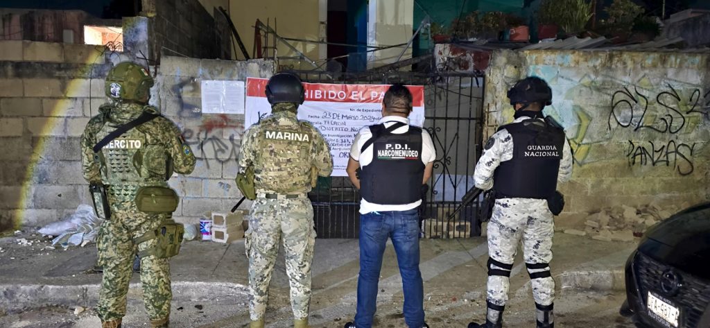 Cinco cateos simultáneos en cuatro municipios de Quintana Roo dejan dos detenidos y decomiso de drogas