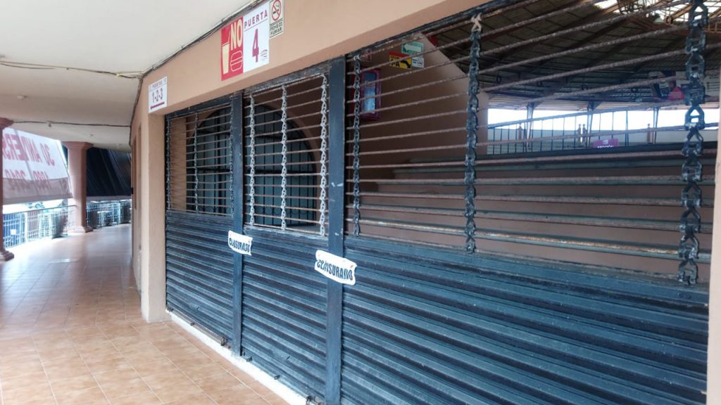 Cancún.- La mañana de este miércoles fue clausurada la Plaza de Toros donde autoridades del municipio de Benito Juárez, colocaron varios sellos de a los accesos principales al recinto.