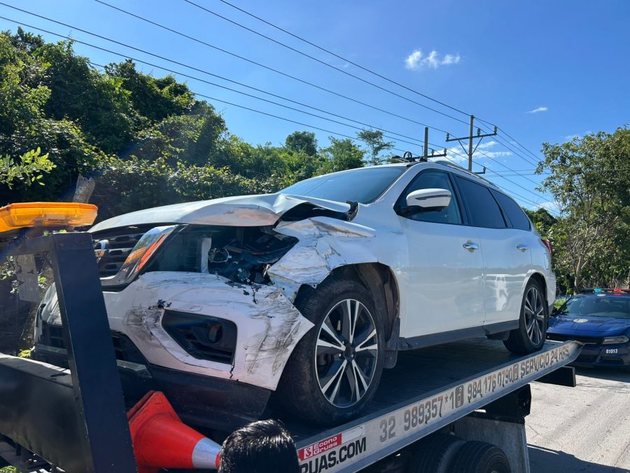 PLAYA DEL CARMEN.- Un accidente se registró la mañana de este sábado en el bulevar de Playa del Carmen, a la altura del sindicato de taxistas “Lázaro Cárdenas del Río”.