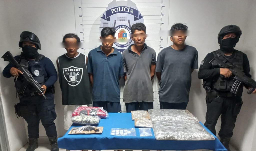 CANCÚN.- Agentes de la Policía de Benito Juárez detuvieron a cuatro masculinos en la supermanzana 242, por delitos contra la salud y portación de arma de fuego.