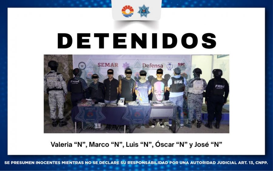 Como resultado del operativo, fueron detenidas cinco personas identificadas como Valeria “N”, Marco “N”, Luis “N”, Óscar “N” y José “N”. Todos quedaron a disposición del Ministerio Público para la integración de la carpeta de investigación correspondiente.