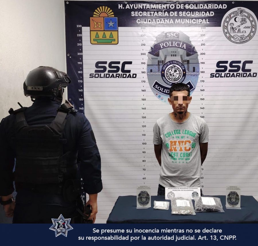 El detenido se identificó como Jonathan “N” de 26 años de edad, originario de Tabasco, quien fue capturado por la Policía Municipal de Solidaridad.