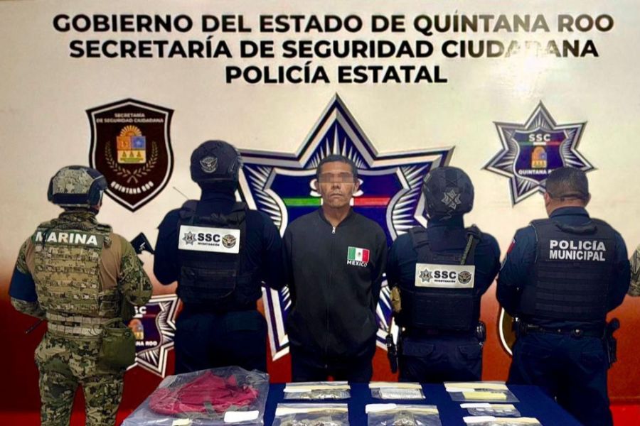 Un operativo conjunto entre fuerzas de seguridad de los tres niveles de gobierno derivó en la detención de un hombre en Cancún, en posesión de drogas.