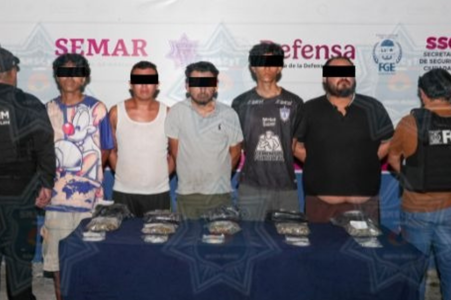 Cinco personas fueron detenidas en la SM 250 de Cancún durante el operativo Blindaje; autoridades aseguraron más de 300 dosis de presunta droga.