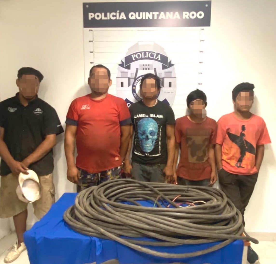Cinco masculinos, entre ellos dos menores de edad, fueron detenidos en la supermanzana 215, manzana 7, de la avenida 20 de Noviembre, esto tras ser acusados de daños a la Comisión Federal de Electricidad.