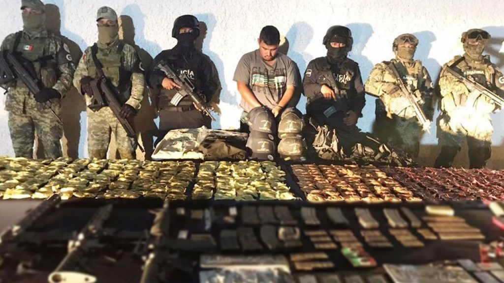 Según datos extraoficiales, al presunto se le encontraron varias armas, droga, gorras y otros productos que era para la agrupación que encabeza Nemesio Oseguera jefe del Cártel de Jalisco Nueva Generación, (CJNG).