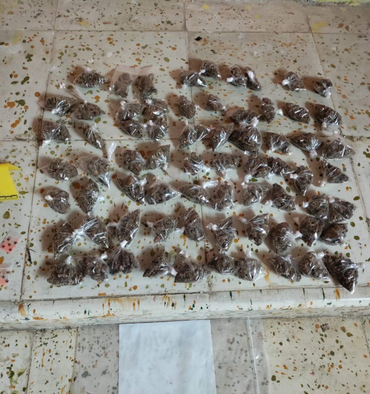 La segunda diligencia fue llevada a cabo en un domicilio ubicado en la Supermanzana 248 de este mismo municipio, donde los agentes aseguraron diversos envoltorios con hierba seca color verde, así como una báscula gramera y dos recipientes metálicos para triturar hierba.