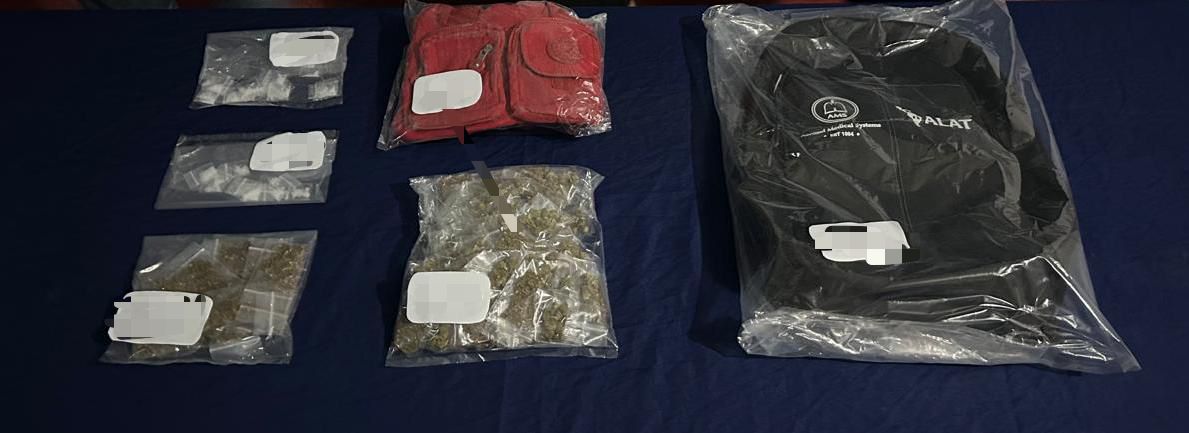 Posteriormente, se les realizó una revisión preventiva, como resultado de la cual se aseguraron 99 bolsitas de plástico tipo ziploc con vegetal verde similar a la marihuana y 32 bolsitas con fragmentos sólidos cristalinos con características del cristal.