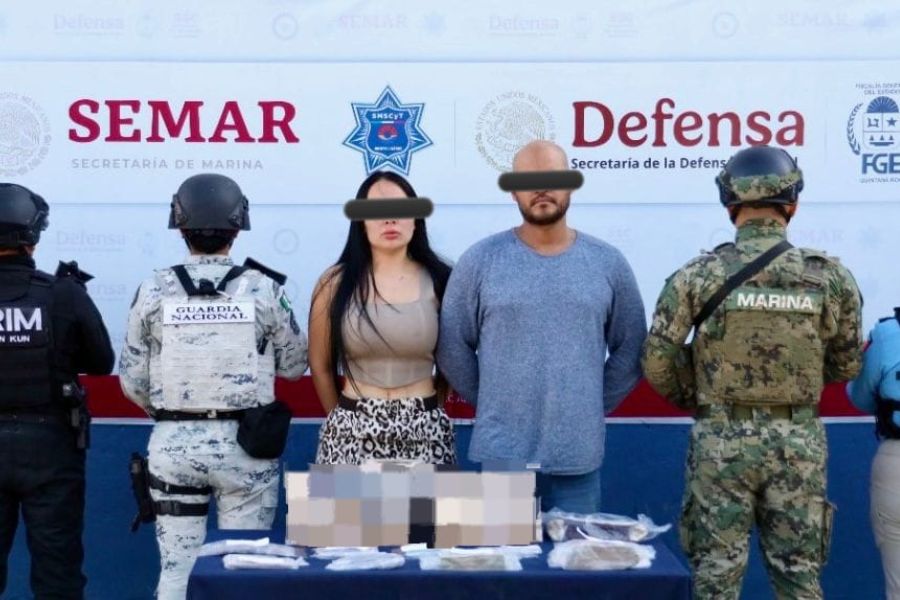 El operativo tuvo lugar cuando los elementos participantes realizaban recorridos de prevención y vigilancia sobre el boulevard Kukulcán, a la altura del kilómetro 4.5, de este municipio, donde fue interceptado un vehículo en el que viajaban las personas ahora detenidas, identificadas como José Rafael “N”, alias “El Dóber” y Valeria Teresita “N” y/o Arelia “N”.
