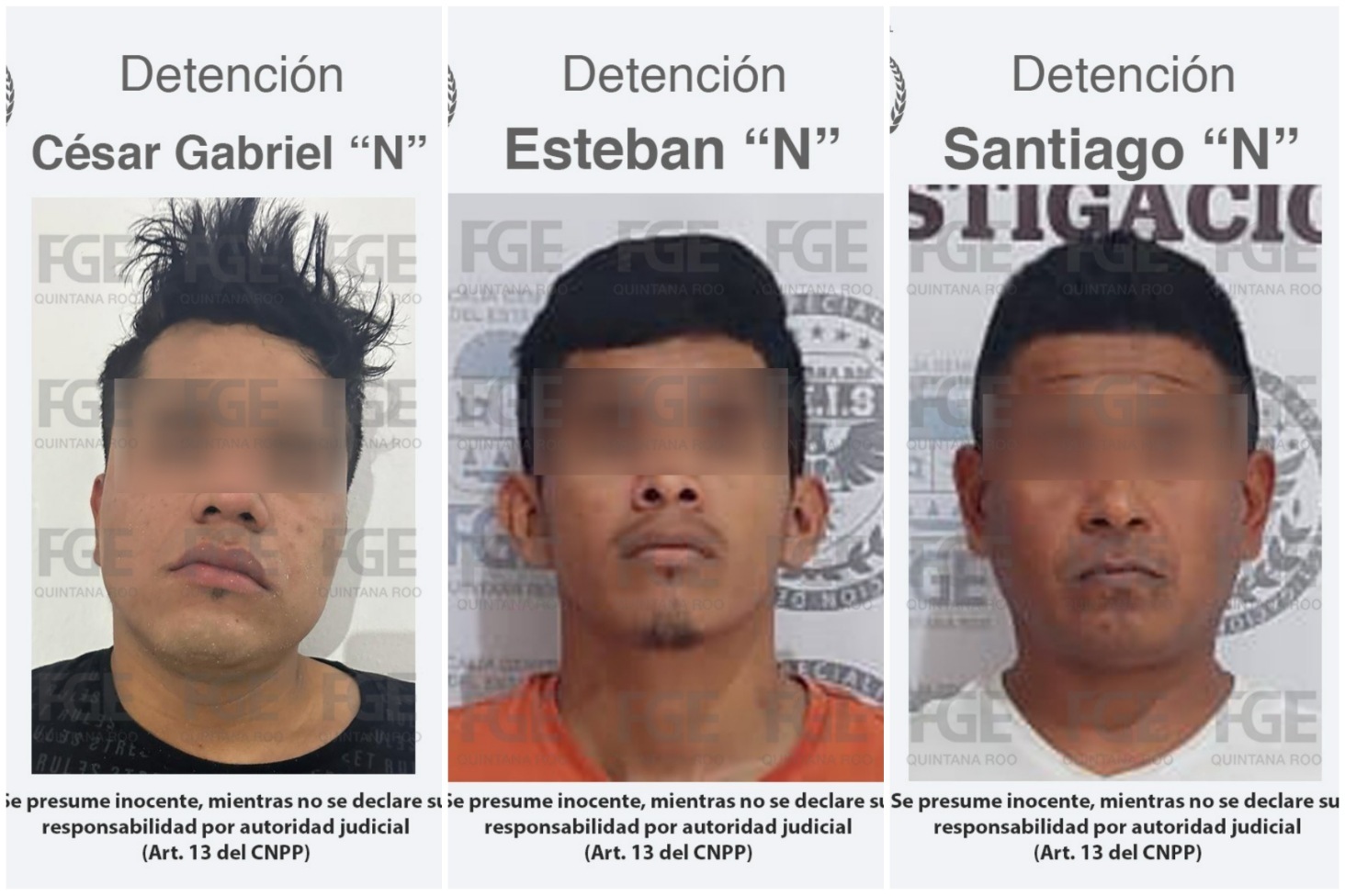 TULUM.- Por su probable participación en hechos que pudieran ser constitutivos del delito de extorsión, en agravio de víctimas de identidad reservada, personal de la Fiscalía General del Estado logró la captura, en dos acciones por separado, de tres personas del sexo masculino, en los municipios de Tulum y Puerto Morelos.