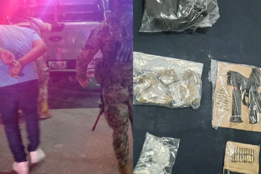 Cancún.- Como parte de las acciones contundentes del operativo “Blindaje Cancún”, efectivos de la Secretaría de Seguridad Ciudadana y Tránsito Municipal, en coordinación con la Guardia Nacional y la Fiscalía General del Estado, lograron la detención de un individuo en posesión de droga y un arma de fuego en la Supermanzana 23 en Cancún.