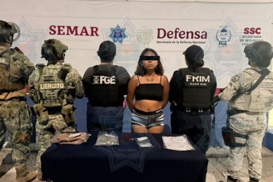 Una mujer de 23 años fue detenida en Cancún con presunta marihuana y cristal durante el operativo Blindaje; autoridades intensifican combate al narcomenudeo.