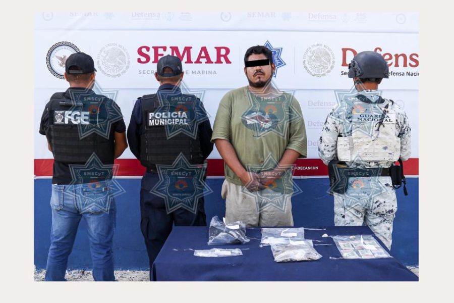 Cancún.- Como parte de las acciones de las autoridades policiales en el operativo “Blindaje Cancún”, los efectivos de la Secretaría Municipal de Seguridad Ciudadana y Tránsito (SMSCyT) lograron la detención de un joven por presuntos delitos contra la salud en su modalidad de narcomenudeo.