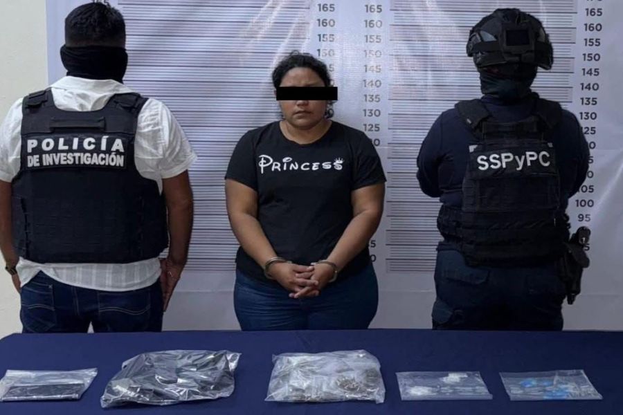 Tulum.- Durante un operativo de vigilancia, una mujer identificada como Cindy Marisol “N”, de 32 años de edad, fue detenida por su presunta participación en delitos contra la salud.