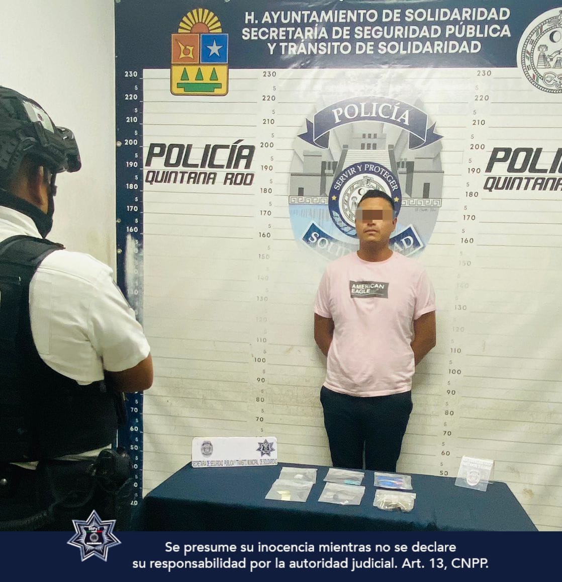 PLAYA DEL CARMEN.- Policías Municipales de Solidaridad realizaron la detención de una persona en posesión de 10 envoltorios con posibles narcóticos cuando patrullaban sobre la colonia Gonzalo Guerrero para prevenir y disuadir delitos.