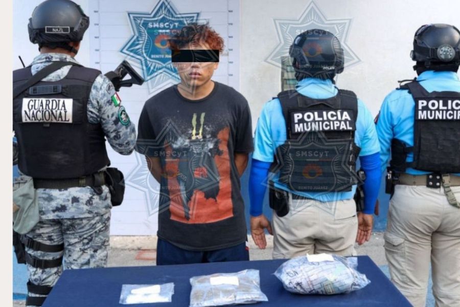 El detenido fue identificado como Efrén Ariel “N”, de 24 años, señalado como posible integrante de una red dedicada al narcomenudeo en áreas turísticas.