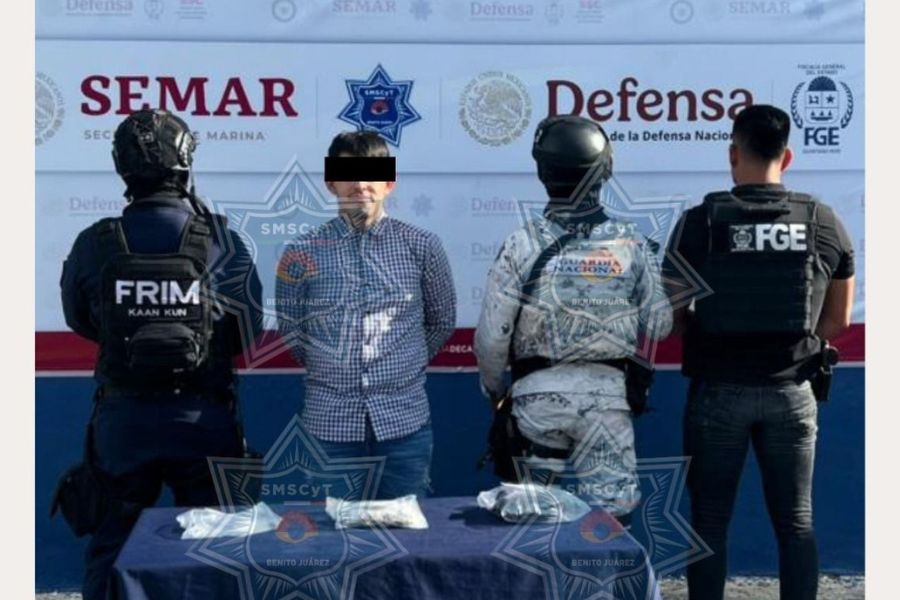 Cancún.- La Secretaría Municipal de Seguridad Ciudadana y Tránsito (SMSCyT) de Benito Juárez, en coordinación con la Fiscalía General del Estado (FGE), detuvo a un individuo presuntamente dedicado a la venta de droga al menudeo en la vía pública, como parte de las acciones de seguridad en la ciudad.