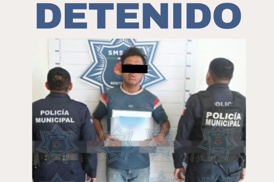 Un hombre identificado como Julio César “N” fue detenido en las inmediaciones de la supermanzana 38, luego de ser señalado como presunto responsable de intentar despojar a un menor de edad de su teléfono celular, provocándole una herida con un arma blanca.