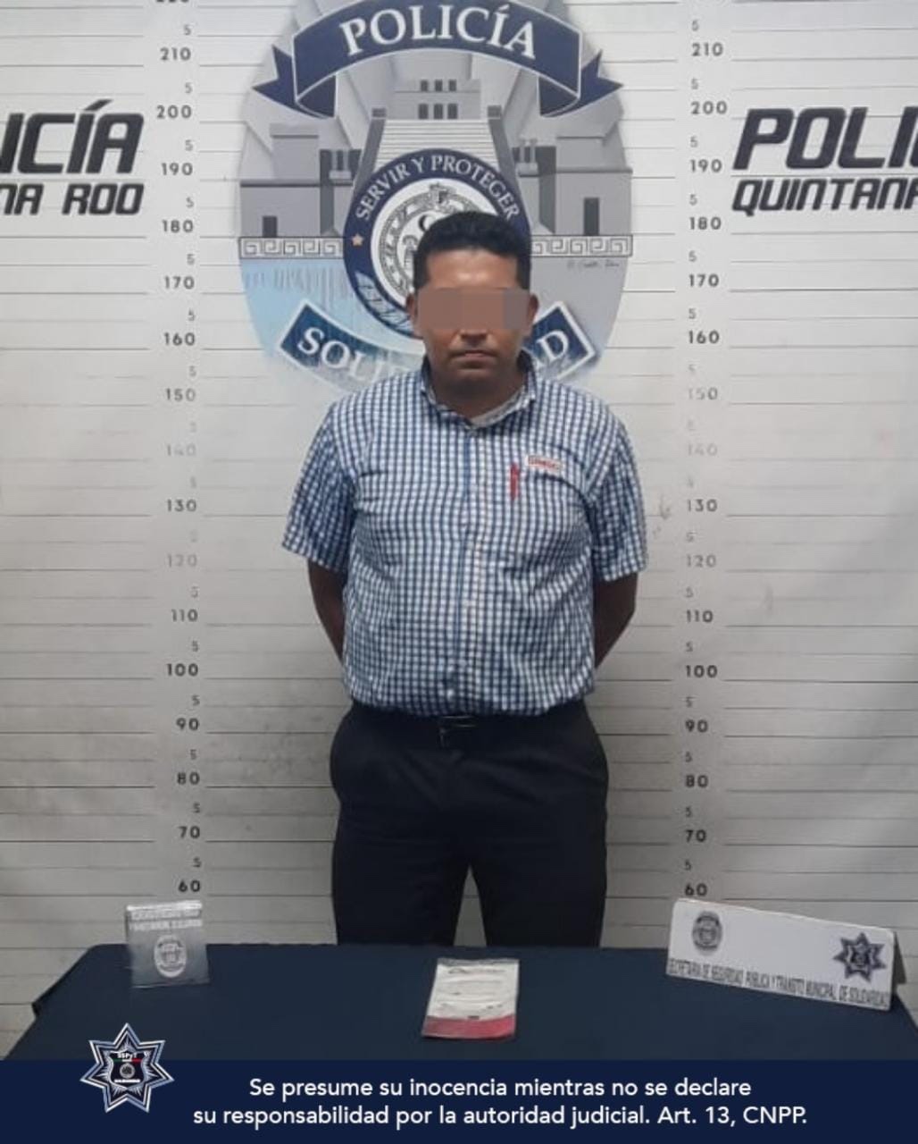 Playa del Carmen.- Un hombre fue detenido esta mañana por manejar un vehículo con placas sobrepuestas que correspondían a una unidad con reporte de robo, además de portar una tarjeta de circulación apócrifa, esto en la colonia Luis Donaldo Colosio de esta ciudad.