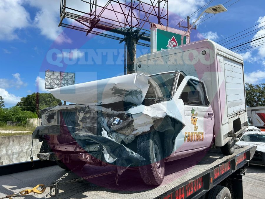 PLAYA DEL CARMEN.- Dos hombres resultaron severamente lesionados, luego que dos camionetas, una de ellas de la empresa Frutmex, chocaran esta mañana en el acceso a Playa del Carmen, a la altura del kilómetro 312 de la carretera federal 307.