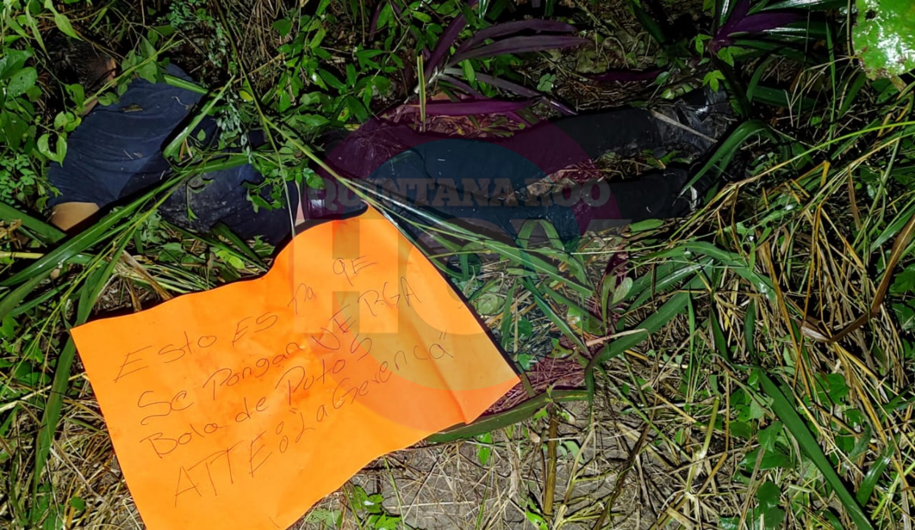 CANCÚN.- El cuerpo de un hombre sin vida fue hallado con una cartulina fosforescente naranja con una amenaza, la víctima se encontraba en un camino solitario a un costado de la carretera gas auto en la colonia El Trébol que se ubica entre la carretera federal al libramiento Cancún-Mérida y la avenida José López Portillo.