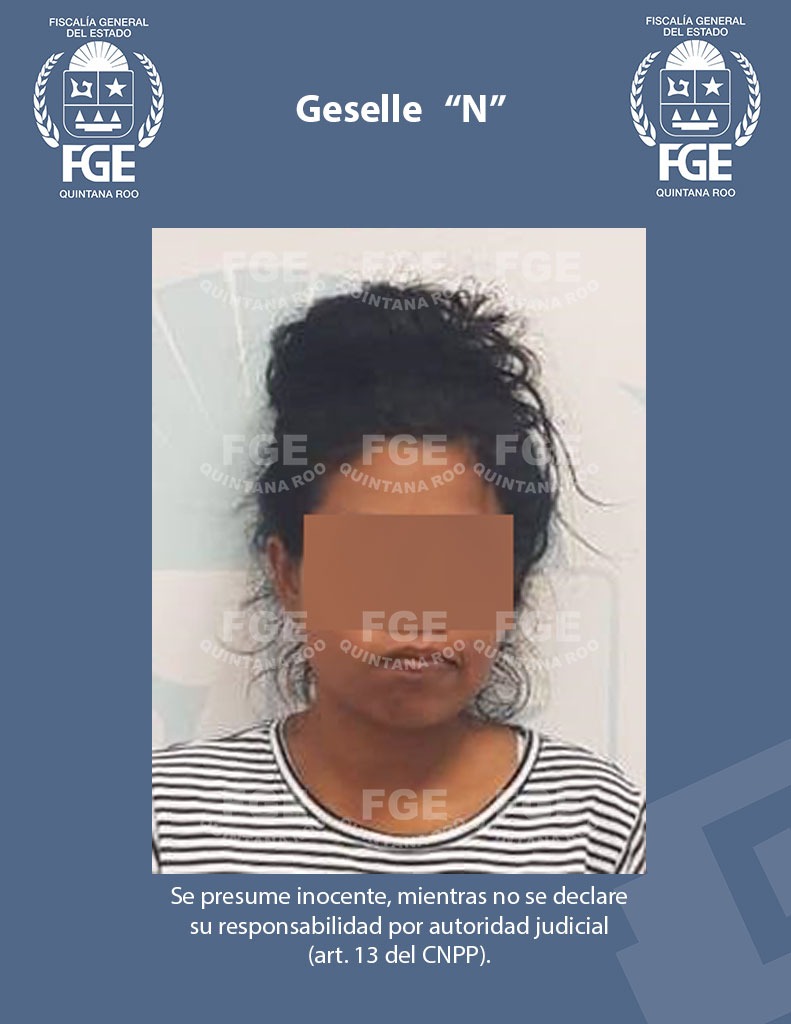 PLAYA DEL CARMEN.- La Fiscalía General del Estado de Quintana Roo informa que policías ministeriales cumplimentaron una orden de aprehensión instruida por un juez de control, en contra de Geselle “N” por el delito de homicidio calificado, relacionado en la carpeta administrativa 376/2019 en agravio de J.J.G.C.