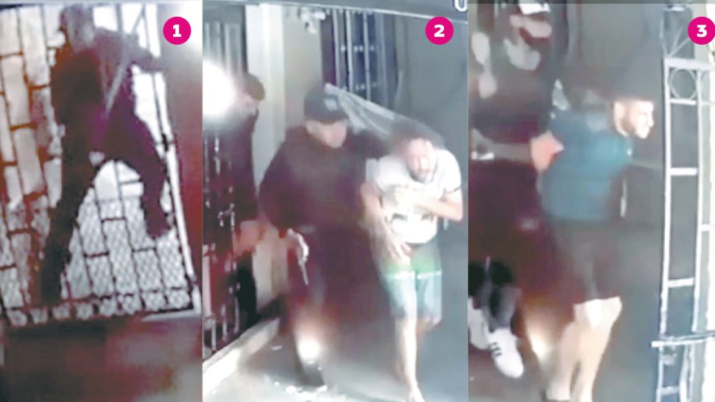 Afuera del lugar, un sujeto armado, al lado de un auto color rojo, vigila la zona, mientras sus cómplices sacan a las personas y las obligan a subirse a la unidad, para luego ir con rumbo desconocido, dejando en el lugar un chaleco balístico.