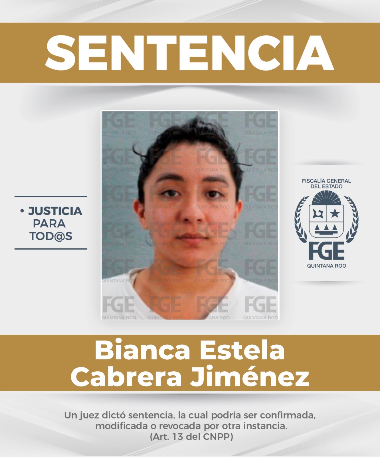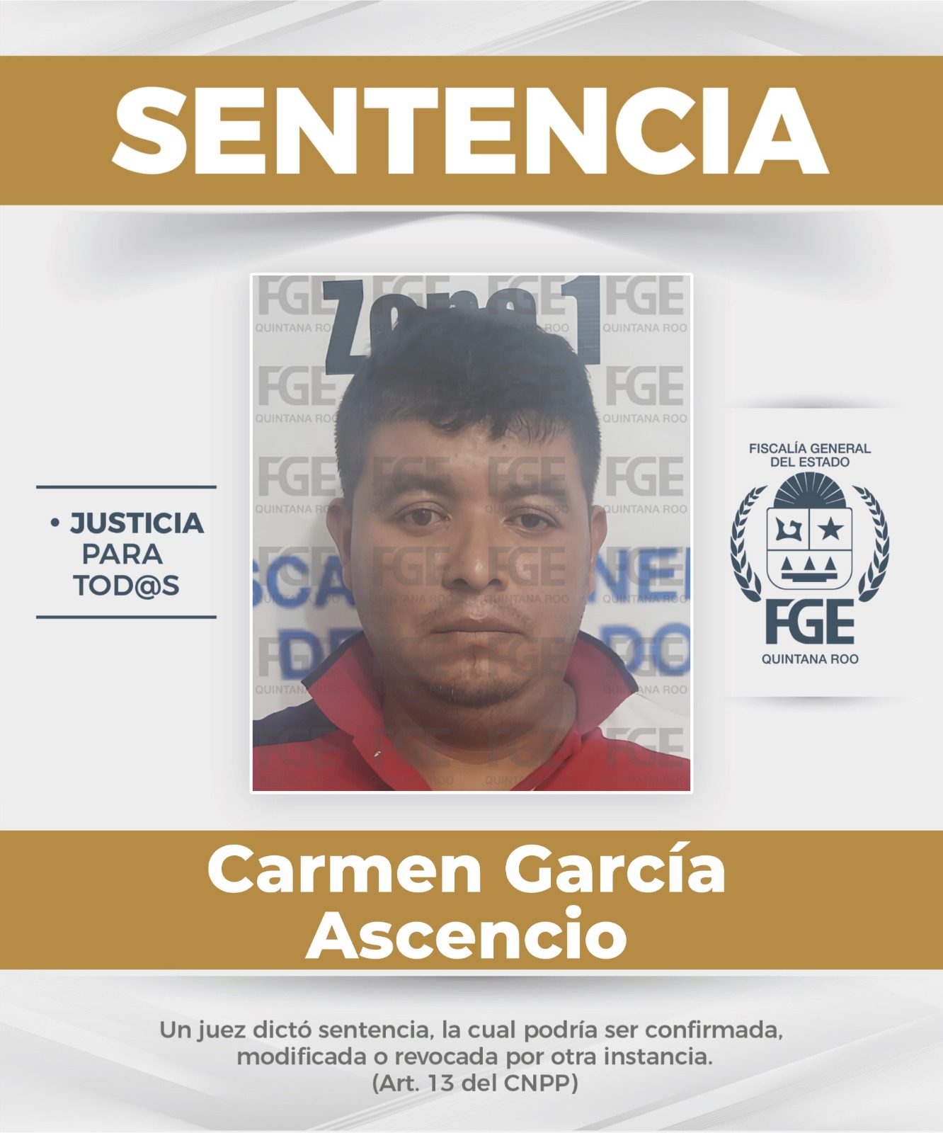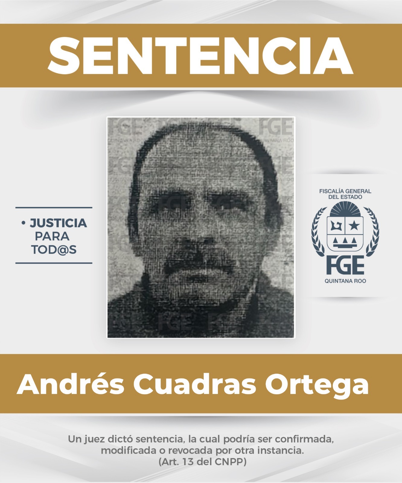 La Fiscalía General del Estado informa que los sentenciados son Carmen García Ascencio, Andrés Cuadras Ortega, Gilberth Alonso Kin Rodríguez y Bianca Estela Cabrera Jiménez