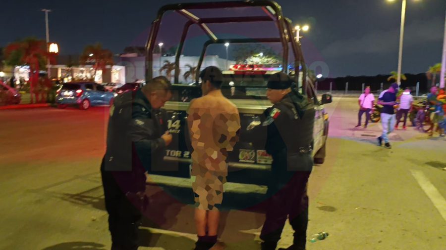 Cancún.- Un hombre que de forma violenta despojó a una mujer de su bolsa fue atrapado, desnudado y golpeado por mototaxistas, en el estacionamiento de la Multiplaza Kabah, en la Región 248 de esta ciudad.