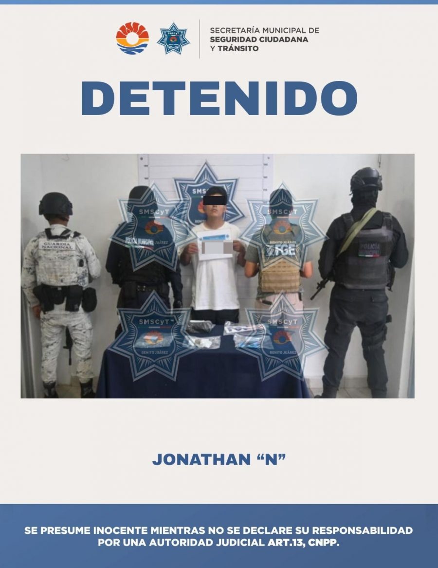 El detenido fue identificado como Jonathan “N”, y ya se encuentra a disposición de las autoridades ministeriales.