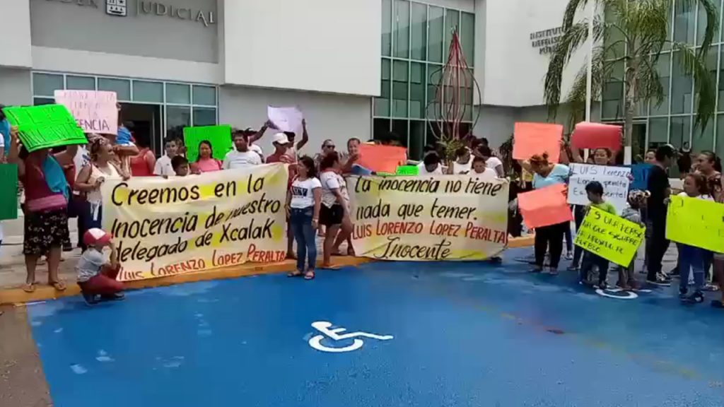 Este miércoles por la tarde, con pancartas en mano más de 50 habitantes se apersonaron en la puerta del juzgado oral de Chetumal, donde exigían la liberación de su delegado.