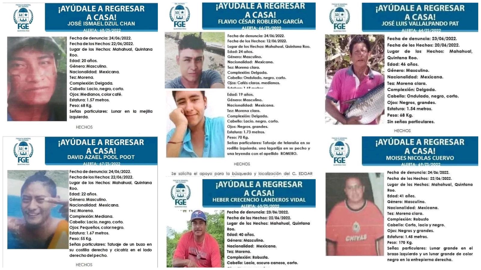 Las identidades de los occisos serían las siguientes, aunque no han sido confirmadas de manera oficial: José Luis Vallapando Pat, de 46 años; Edgar Medina Romero, de 19; Heber Crescencio Landeros Vidal, de 40; Flavio César Roblero García, de 24; David Azael Pool Poot, de 22; Moisés Nicolás Cuervo, de 41, y José Ismael Dzul Chan, de 20 años de edad, todos originarios de Quintana Roo.