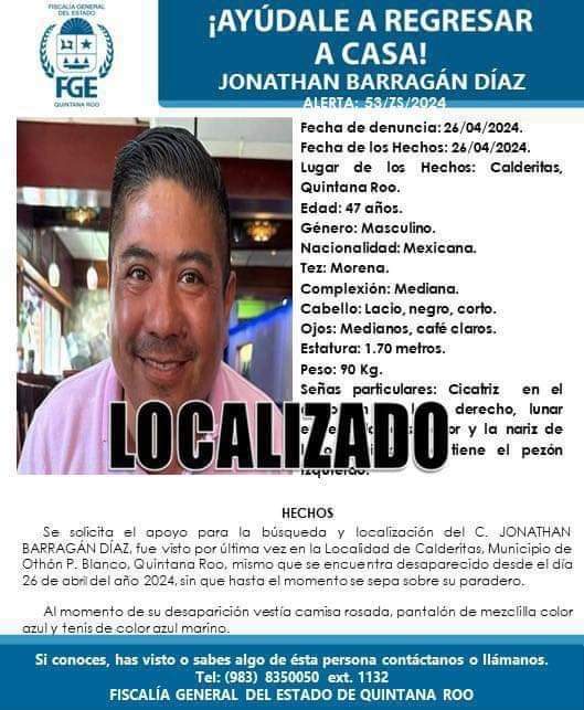 Chetumal.- Esta mañana, la Fiscalía General del Estado confirmó que el cuerpo hallado está mañana en el bulevar Bahía corresponde al del empresario Jonathan Barragán Díaz, quidn fue “levantado” horas antes por un comando armado en Calderitas.