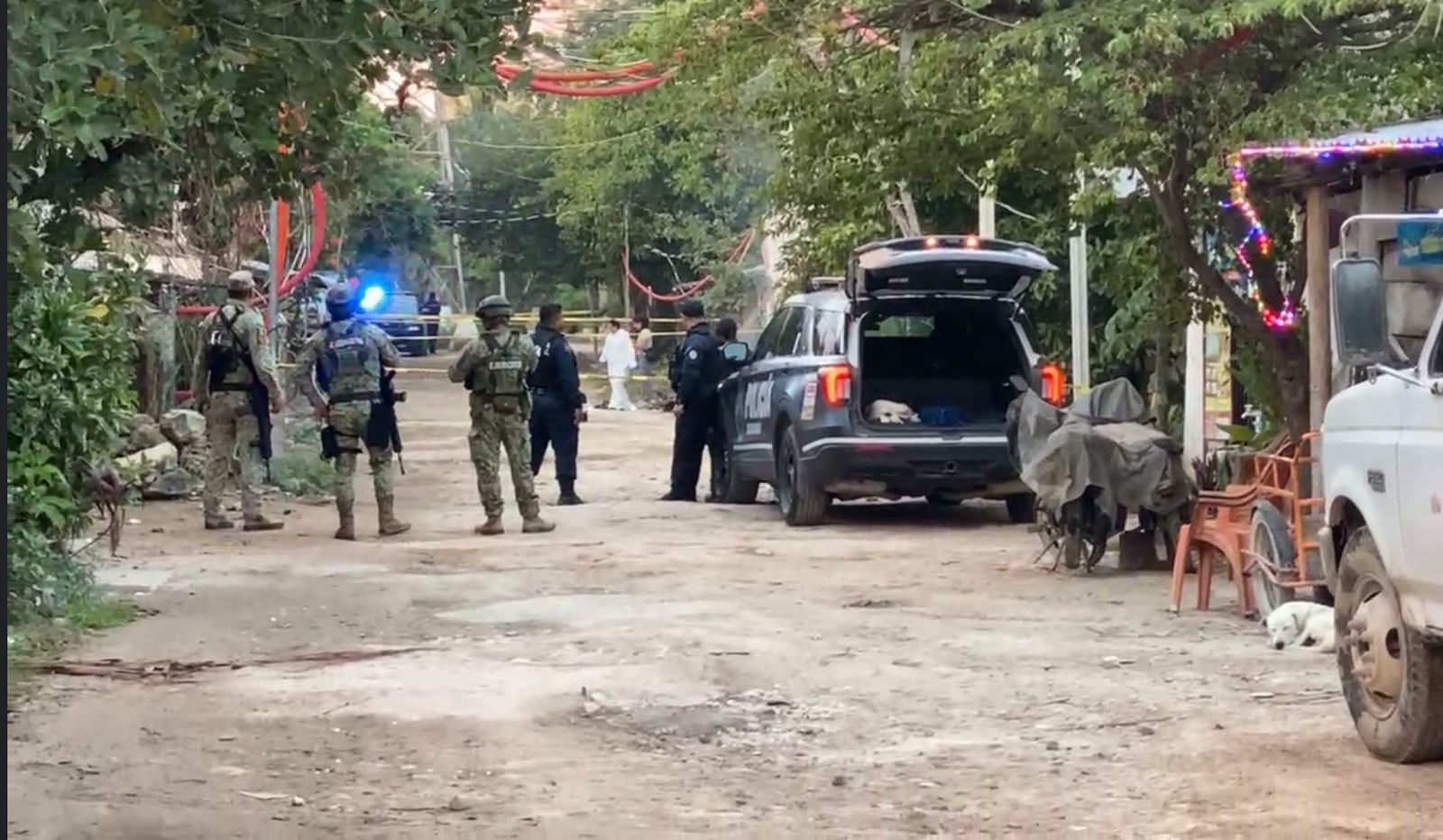 Autoridades policiacas arribaron a eso de las 6 de la mañana y procedieron a acordonar la zona y contactar a la Fiscalia General del Estado. Una mujer del lugar arrojo agua sobre el cuerpo, para sofocar el incendio.