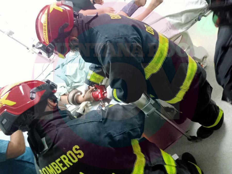 Al lugar llegaron paramédicos y bomberos, que después de evaluar la situación decidieron desarmar al molino, sacándolo de su base, para trasladar al paciente tal como estaba al hospital general de Playa del Carmen.