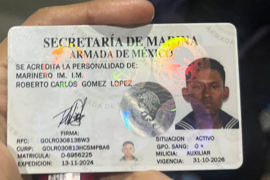 Entre las escasas pertenencias del hombre se encontró una credencial con apariencia oficial de la Marina. Sin embargo, debido a las lesiones en el rostro, no ha sido posible confirmar si la identificación corresponde a él.